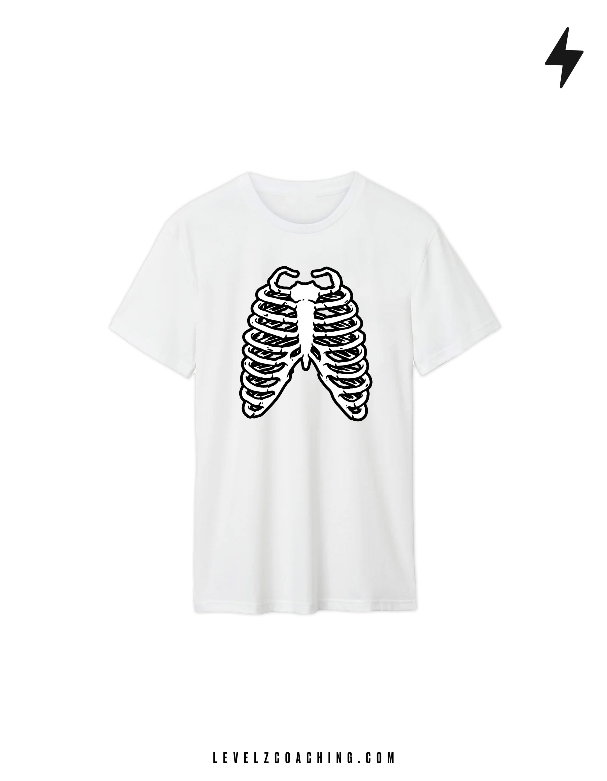 100% cotton unisex t-shirt with a ribcage skeleton graphic. Comfortable, breathable, and perfect for workouts, fitness style, or casual streetwear.